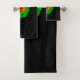 Vocês podem admirar meu desenho de Dia das Bruxas de uma abóbora flutuando sobre chamas de grama verde com o ditado: "Tenha um Halloween Mágico!" Eu chamo este desenho, "Abóbora Mágica do Halloween". Agora você pode pedir, "Abóbora Mágica do Halloween", neste conjunto de toalhas do banheiro.