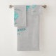 Adicione um toque elegante à decoração da banheira com um conjunto de Toalhas Banho de Conch Teal. Toalha design apresenta uma camada vibrante e texto personalizado para você personalizar com o seu nome de família contra um fundo texturizado de papel de cinza leve. Itens adicionais de decoração pessoal disponíveis com este design.