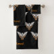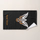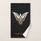Ícone de pássaro estilo tribal inspirado em designs de nó celta. Cor de fundo personalizada. Texto personalizado em cada toalha.