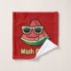 Bela caricatura. Uma fatia de melancia com óculos de sol. Um padrão perfeito. Texto personalizado em cada toalha.