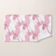 Padrão minimalista em tons roxos, cor-de-rosa e brancos, design com folhas, pontos de rabisco e ondas.