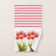 Decore o seu banheiro para a estação da primavera com este lindo conjunto de toalhas com padrão de flor de tulipa. Este padrão floral alegre é perfeito para decoração de Páscoa ou Dia das Mães. O design apresenta uma ilustração de tulipa vermelha em fundo branco. A toalha de mão tem listras vermelhas e brancas contrastantes.