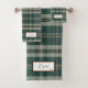 Adicione estilo simples com o conjunto de toalhas Modern Plaid Juniper. Personalize com seu nome e data de fundação.