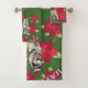Felizes Feriados, roucos e flores de Poinsettia no Conjunto de Toalhas de Banheiro.