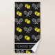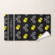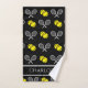 Toalha de banho de tênis em greve com bolas de tênis amarelas em negrito e padrão de raquete branco sobre fundo preto. Personalize com seu nome para um toque esportivo, na moda no banheiro ou no tribunal. Perfeito para jogadores de tênis, treinadores e fãs, este conjunto faz um presente de excelente para aniversários, comemorações de equipes ou prêmios de torneio. Inclui vários tamanhos de toalha para uma aparência de correspondência completa que é prática e atraente para os olhos.