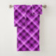 Um conjunto de toalhas de banho com um design de padrão de xadrez roxo, bonito e orquídeo.