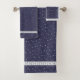 Pendure estas toalhas em seu banheiro para trazer para dentro um toque do inverno. Este grupo caracteriza um campo dos azuis marinhos cobertos nos flocos de neve. A mão e as toalhas de banho têm listras reversas do branco com flocos de neve azuis quando o pano de coordenação da lavagem tiver o fundo azul aparado com uma banda do branco com flocos de neve azuis.