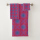 Aproveite esta toalha de banheiro colocada em diferentes padrões de círculos, quadrados e estrelas em gradientes da cor do ano 2023 Viva Magenta a Delft. Altere o posicionamento dos padrões, usando a opção 'Editar Design'.
