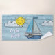 Grupo de toalha do iate do design da praia da madeira lançada costa.