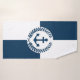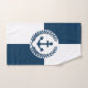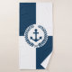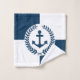 Design com temas náuticos, com decoração da soleira da âncora e da soleira do louro sobre fundo geométrico azul e branco