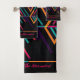 Um design da Trendy dos anos 80, este conjunto de toalhas de banho apresenta um fundo preto com listras cor-de-rosa, roxas, azuis, laranja. Personalize seu nome em rosa. Peça o seu hoje! Design: kippysdigitalcrafts https://www.etsy.com/shop/kippysdigitalcrafts