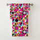 Adicione um estilo pessoal à decoração do banheiro com um conjunto de toalhas feito por medida. Retro Geométrico Hot Pink Preto, Coluna De Bandeja De Design De Padrão Preto, Cor-De-Rosa, Retrogeométrica. ideia de presente de excelente.