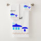 Conjunto de toalhas de banho, constituído por um pano facial, uma toalha de mão e uma toalha de banho com um design grego. Você pode personalizar este conjunto de toalhas de banho com o nome do seu lugar favorito na Grécia ou qualquer outro texto de sua escolha. Se precisar de ajuda para personalizar, entre em contato conosco através do link de mensagem nesta página. Conjunto de toalhas do banheiro grego de design