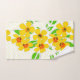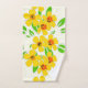 Esta composição floral vibrante é definida sobre um fundo de canvas amarelo macio com uma cobertura de banda de géron amarela nítida, resultando num adorável conjunto visual de toalha de banho floral.