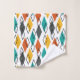 Este conjunto de toalhas tem um design moderno século médio de diamantes em laranja, amarelo, turquesa, cinzas, e esboçado espalhado por um campo de branco.