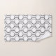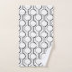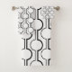 Esta cortina de chá tem um design moderno século médio de círculos em preto dividido ao meio e em linhas num campo de branco.