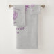 Adicione um toque elegante à decoração da banheira com um conjunto de Toalhas de Banho Magenta Conch. Toalha design apresenta uma camada vibrante e texto personalizado para você personalizar com o seu nome de família contra um fundo texturizado de papel de cinza leve. Itens adicionais de decoração pessoal disponíveis com este design.