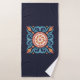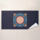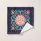 Um intricado design de azulejo inspirado em boho em tons azuis, vermelhos e terras quentes. Projetado para uma aparência vintage-encontra-moderna, ideal para portas copos, arte de parede, camas e outros produtos de aparência moderna.