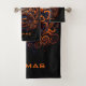 Este conjunto de toalhas de banho oculares apresenta uma arte de dragão chinês abstrato em cor laranja e azul. Você pode personalizá-lo excluindo o texto, adicionando seu próprio nome, iniciais ou qualquer texto de sua escolha.