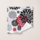 Este conjunto atraente de toalhas de três partes apresenta como fundo um padrão de flores preto, cinza, branco e vermelho. A toalha grande de banho é preta sólida, com o padrão floral como uma borda inferior. A toalha de mão e o pano de lavagem têm o padrão, e contrastam lindamente com a toalha de banho. Muito dramático, com um salto de cor! Certifique-se de ver os produtos de decoração doméstica correspondentes em nossa loja. *Crédito de Design gráfico para os Designs Malachi no Etsy.
