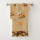 Toalha de outono. Abóboras, folhas de outono, fundo de ouro escuro. Consulte o novo conjunto de toalhas de outono: https://www.zazzle.com/fall_autumn_pumpkin_towel_set-256806365958046627 ou: https://www.zazzle.com/fall_autumn_pumpkin_towel_set_2-256060078623936836