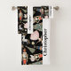 O Balé personalizado Nutcracker de Natal Bath Toel Set apresenta personagens e símbolos de balé de nutcracker de férias em fundo negro, com fácil personalização do nome modelo - coloque todos na sua família a sua toalha de banho de férias definida para o Natal!