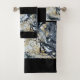 Toalha preta com borda branca e Dourada preta preta a negrito (fundos brancos) Disponível como um conjunto ou individualmente. Pintura original de R. Lamb