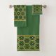 Conjunto de toalhas de banho OPULENCE. Verde Escuro Elegante e impressão Geométrico Dourado.