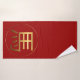 Ideograma do Cavalo Chinês ouro com efeito digital gravado. Design em toalhas de banho colocadas com fundo vermelho escuro. Você pode mudar facilmente a cor do plano de fundo, o tamanho e a posição do design clicando no botão personalizar. Disponível com todos os sinais do Zodíaco Chinês. Produtos caseiros, acessórios, artesanatos, suprimentos de festa e muito mais... Perfeito para o Ano Novo Chinês do Cavalo 2026 ou Aniversário (nascer pessoas no Ano do Cavalo).