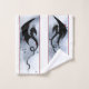 Dragão tribal preto com pano de fundo de cinzas azuis e pequenas flores vermelhas.