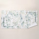 Os arranjos delicados e foliares, com pequenos sotaques florais em tons suaves e sonhosos de verde, ouro e azul poeirento, com esparsas de cantos reluzentes e de folhas falsas, formam o padrão de fundo para esta elegante design. Consulte a ID817 para ver outros produtos com design, incluindo artigos de papelaria de casamento correspondentes.