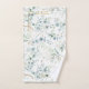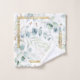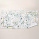 Disposição delicada e foliar com pequenos sotaques florais em tons suaves e sonhosos de verde, ouro e azul empoeirado, com espliação de brilho e ouro, caixilhos de folha falsa, formam o padrão de fundo para esta design elegante de toalha. Consulte a ID817 para ver outros produtos com design, incluindo artigos de papelaria de casamento correspondentes.