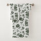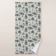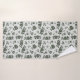 Two patterned towels are displayed with a floral design. The top image shows a towel hanging on a rod, while the bottom shows a washcloth with a turned corner.
