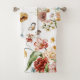 Floral-patterned towel set featuring vivid flowers, butterflies, and dragonflies. Top image shows the set hung on a rack; bottom displays it flat.