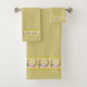 Elegant golden horseshoes decorated with flowers on light beige Bath Towel Set. Simple stylish design. Horseshoes are believed to bring good luck and protection.