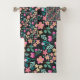 Conjunto De Toalhas Elegant Hand-Drawn Pink Floral Black Design