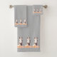 Elegant modern white horses with pink flowers on silver gray Bath Towel Set. Simple stylish design