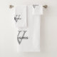 Add a touch of timeless elegance to your bathroom with our custom monogram bath towel set, personalized with your name and initial in a beautifully simple and modern design. Featuring the name and initial in a blend of modern and script fonts with grey and black text set against a white background, these colors can be changed if preferred. Whether you're updating your own space or gifting to someone special, this piece combines style and individuality in one stunning accent.