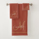 Personalized elegant monogram terracotta gold script name bathroom towel set gold borders. Refresh your bathroom decor with a minimalist typographic style.
