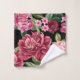 Este conjunto colorido de toalhas de flores, brilhantes e arrojadas, a aquarela apresenta flores em cor rosa, vermelha e pêssego com folhas botânicas e fundo preto.Uma toalha de banho perfeita para o seu banheiro.