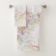 Neste conjunto de toalhas de na moda é um design de mármore rosa-ouro em um prato leve de volta. Víblias clássicas elegantes.