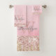 Elegante, moderno, rosado rosado rosado rosado rosado cor-de-rosa, brilho dourado goteja nome personalizado conjunto de toalhas de banho monograma. Este design apresenta o amarelo-rosa-rosa-rosa-claro e branco-claro e o brilho amarelo-brilho-brilho no fundo cor-de-água-rosa com modelo de texto de nome e monograma. O nome é escrito como uma fonte elegante e bonito escrita à mão. Um presente feminino perfeito para festa de aniversário, casamento, chá de panela, festa de aniversário 16 e chá de fraldas para qualquer um que goste de coisas bonito. Se precisar de ajuda ou itens correspondentes, entre em contato comigo.