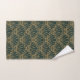 Conjunto de toalhas de banhos de flores de deco e verde-esmeralda e dourado. O design apresenta um padrão repetitivo de flores verde esmeraldas e de ventoinhas douradas. Motif estilo Gatsby do 1920.