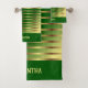 Este pode ser um presente especial para os temas da esmeralda e do ouro. Ouro stripes contra um fundo verde esmeralda e gradiente dourado. Um conjunto personalizado de toalha de banho que você pode personalizar para torná-lo seu.
