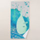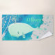 Sob a baleia marinha. Baleia branca com spray de água espumante dourada. Design de bebê de baleia divertida. Ouro verde, azul. Altere as informações do seu próprio design personalizado.