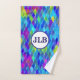As escalas de dragões em tons de joias de azul, magenta, amarelo e verde criam um belo e luxuoso conjunto de toalhas.