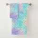 Bonito Scales de Sereia Bath Conjunto de sereia Bonito escamoteia toalha de banho em forma de sereia rosa, azul e roxa com falso brilho.