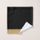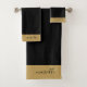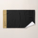 Monograma elegante personalizado com o nome do guião preto de ouro, toalha de banheiro com bordas douradas. Atualize a decoração do banheiro com um estilo tipográfico minimalista.