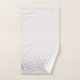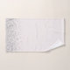 Neste conjunto de toalhas de na moda é uma borda prateada brilhante em um pano de fundo branco para contraste onde na toalha grande você pode personalizá-la com uma letra. Tema da gliteria química