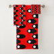 Este conjunto de toalhas tem uma design moderna do século médio de ovais negros com círculos brancos ligados por linhas brancas num campo de vermelho. Quer cores diferentes? Me mande mensagem.